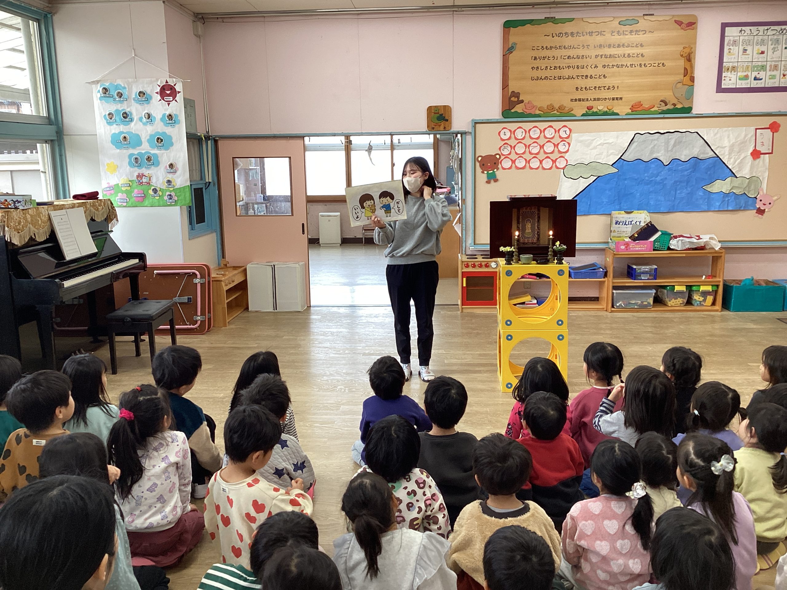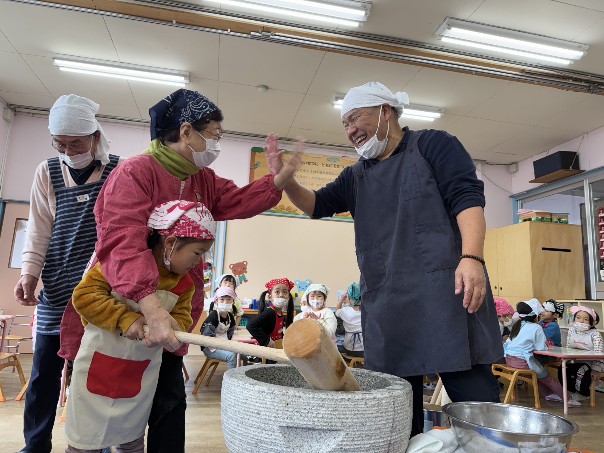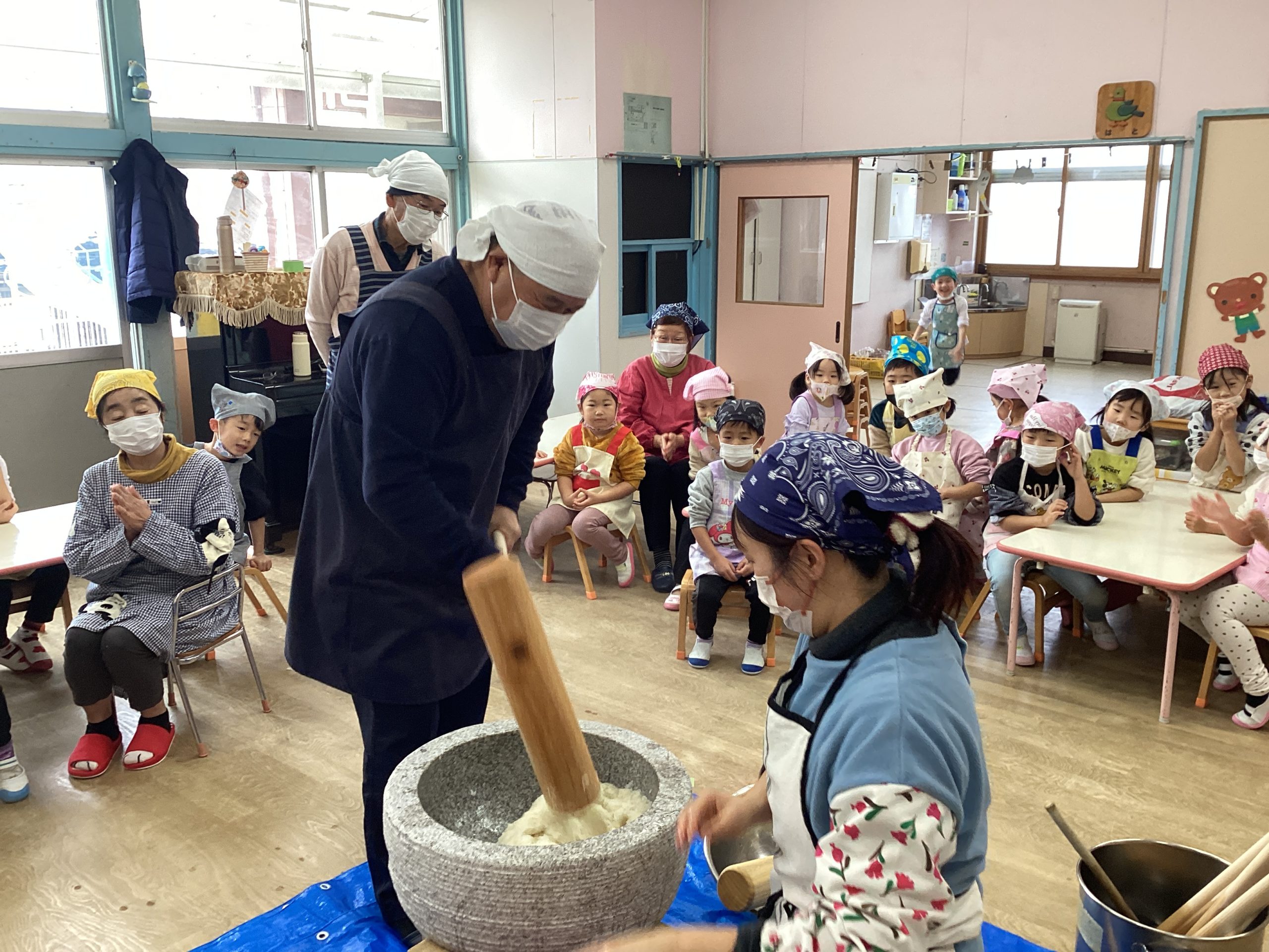 錦町の山源の山口先生に来ていただき、お魚教室とふじぐみさんは味覚の授業をしていただきました。