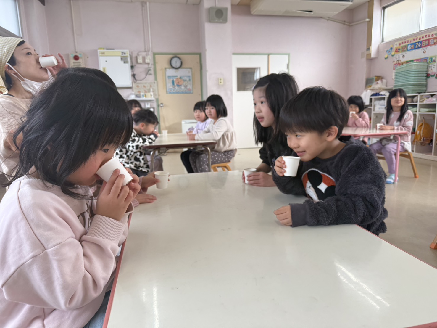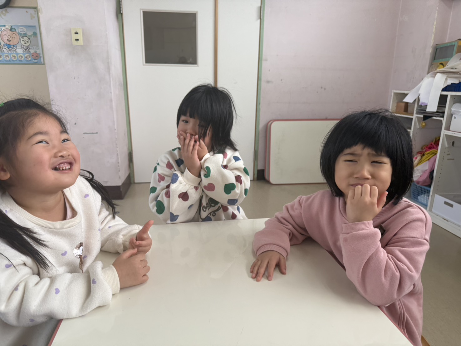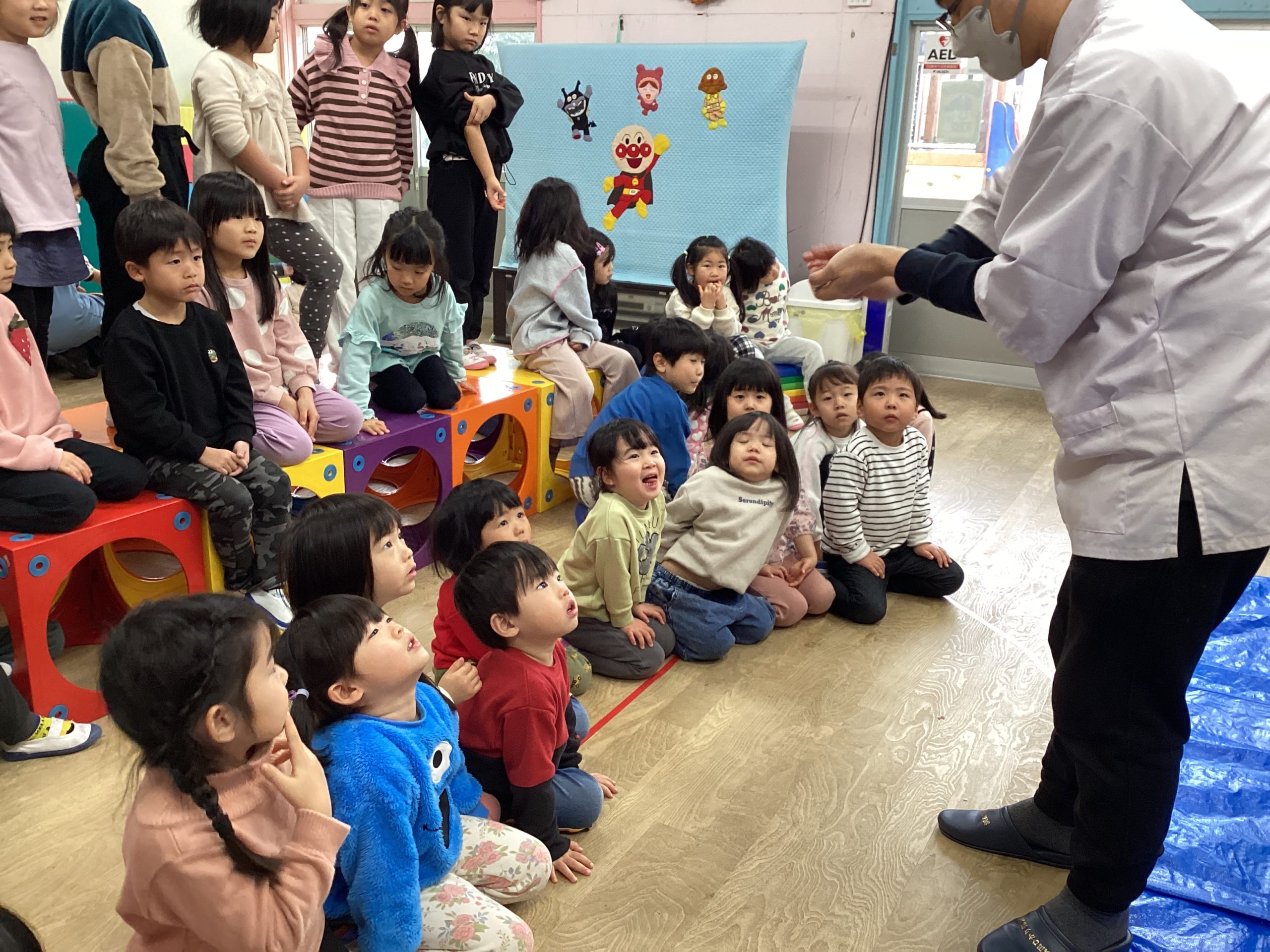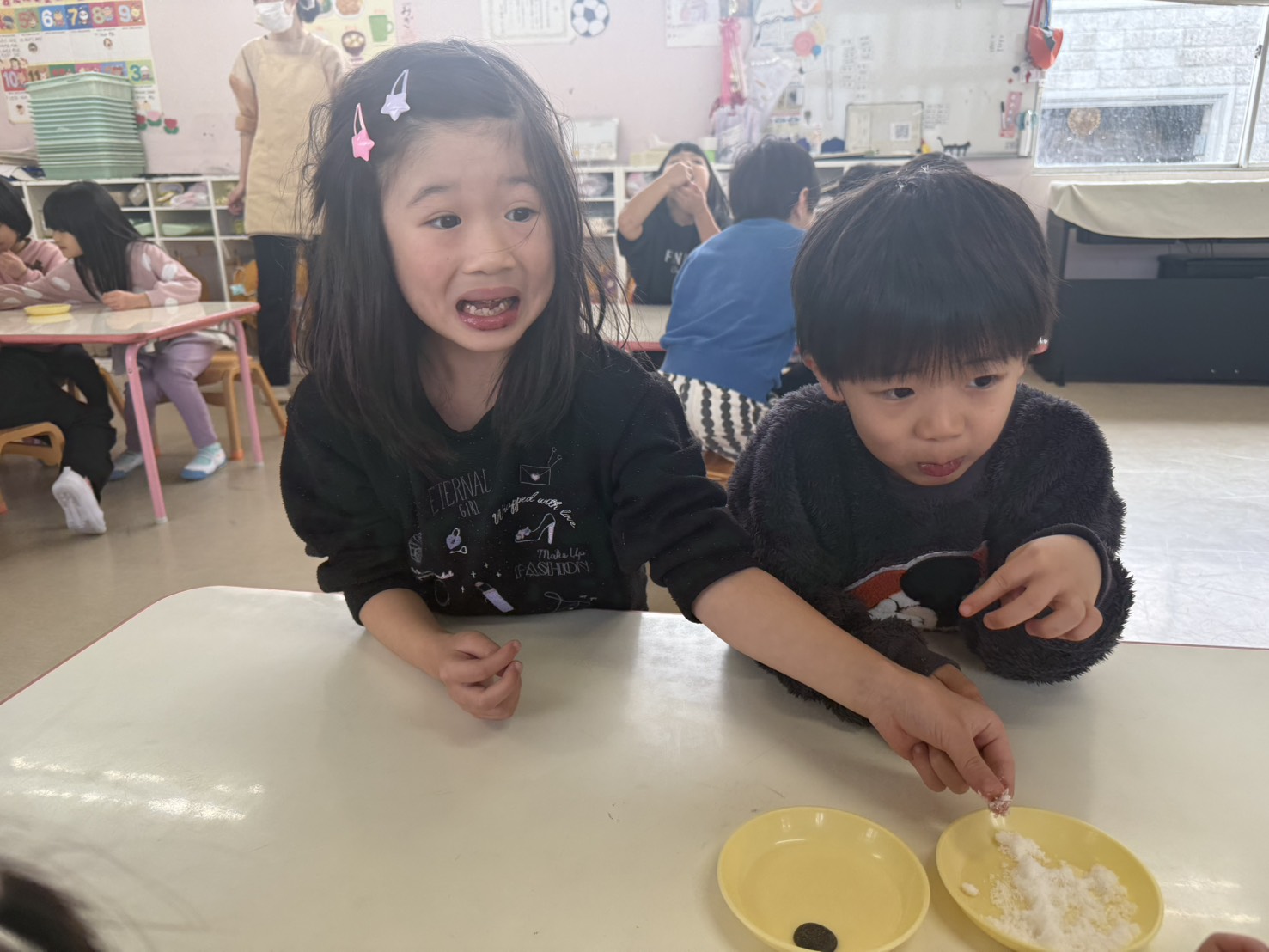 その後、味覚の授業(ふじぐみ)では塩・酢・チョコ・さとう・出汁をなめてみました( *´艸`)