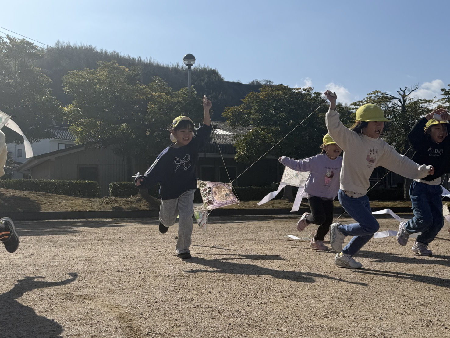 2026/2/19 凧あげ(ふじぐみ) 詩吟教室の森川先生と作った “凧” をあげに元浜公園へ行きました。 カラフルで個性豊かな凧あげ! どうやったらあがるのかな(‘_’) 一生懸命考える子ども達でした♪ 走ってみよう! みんないくよー! あがれー!! いけー! すてきだね♪